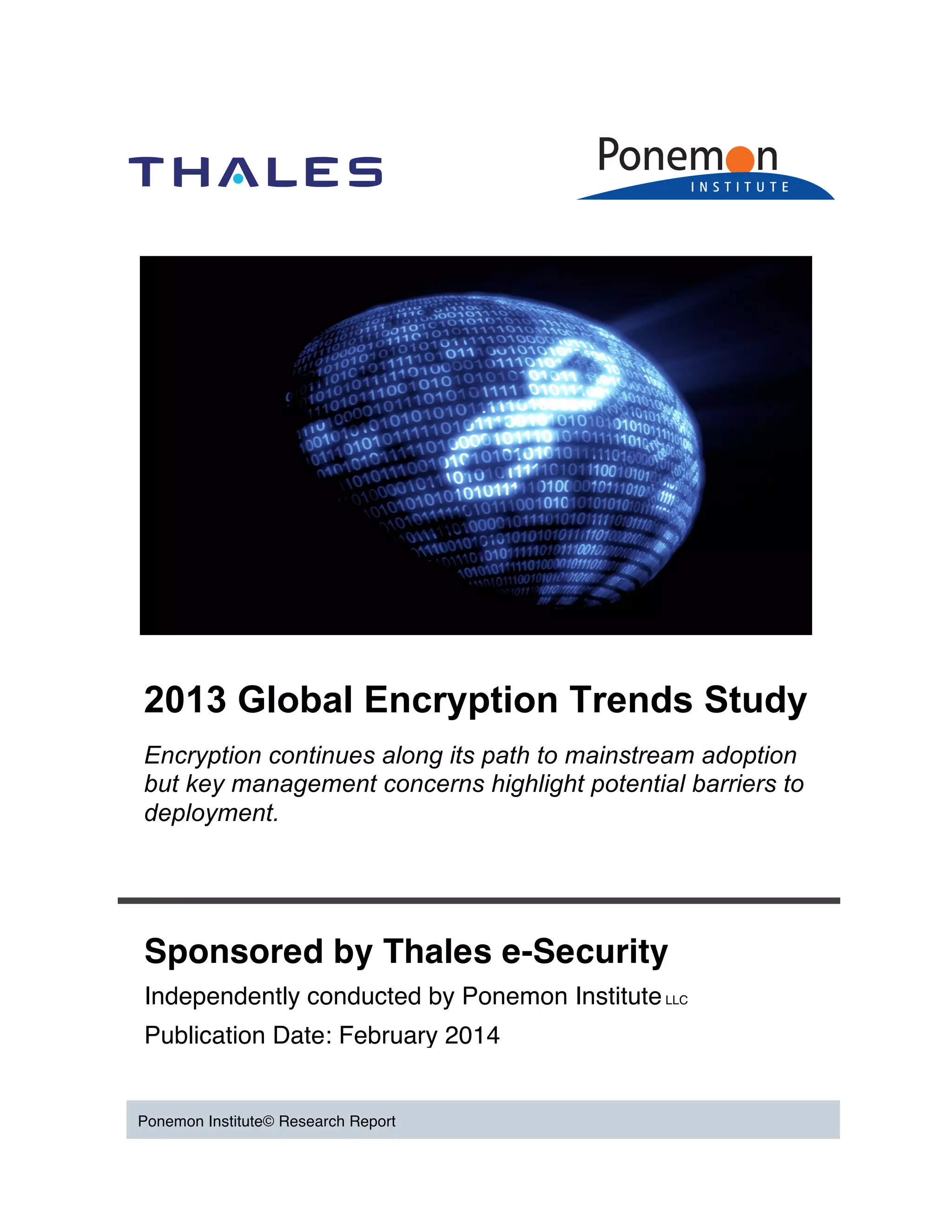The 2013 Global Encryption Trends Study reveals that encryption adoption is increasingly seen as a strategic part of enterprise security, with organizations shifting focus from compliance to privacy obligations. Key findings indicate that businesses are adopting comprehensive encryption strategies more often, with business unit leaders gaining influence over technology choices. Despite these positive trends, key management remains a significant challenge, indicating a need for improved resources and standards in managing encryption keys.