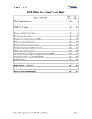 The 2013 Global Encryption Trends Study reveals that encryption adoption is increasingly seen as a strategic part of enterprise security, with organizations shifting focus from compliance to privacy obligations. Key findings indicate that businesses are adopting comprehensive encryption strategies more often, with business unit leaders gaining influence over technology choices. Despite these positive trends, key management remains a significant challenge, indicating a need for improved resources and standards in managing encryption keys.