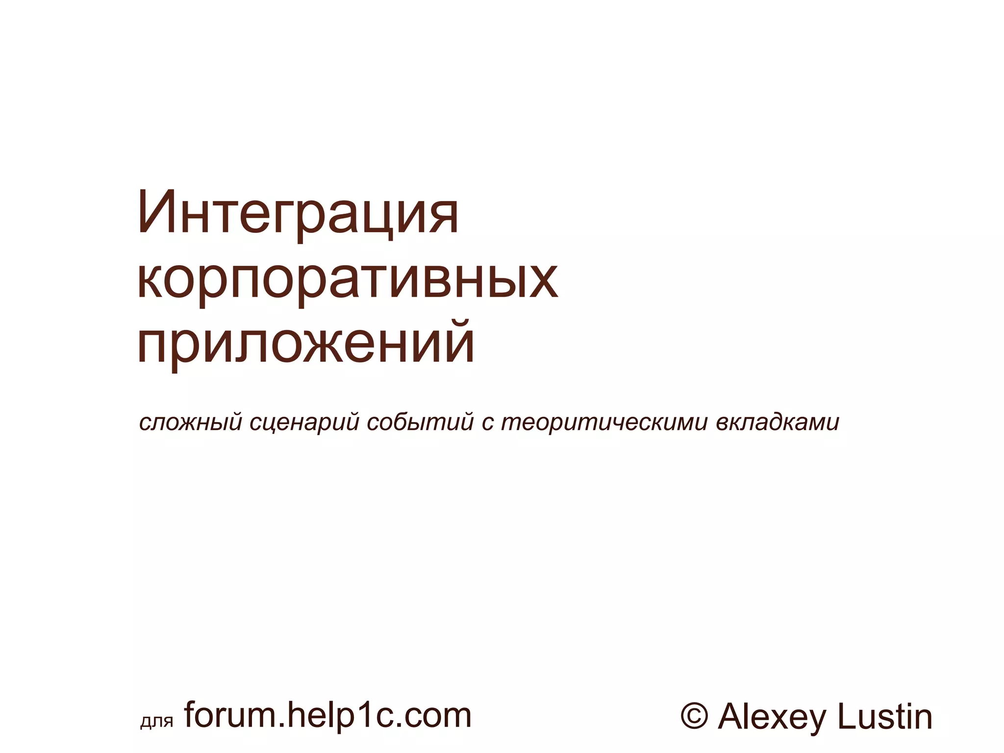 Документ обсуждает интеграцию корпоративных приложений, акцентируя внимание на сценариях событий и жизненном цикле данных. Упоминаются важные аспекты, такие как контроль затрат и времени на запуск интеграционных сценариев, а также требования к процессам разработки. В конце приводятся необходимые технические условия и инструменты для успешной интеграции.
