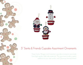 The document lists various holiday and gift items, including ornaments, kitchen accessories, drinkware, and personal items, all aimed at enhancing winter and Christmas celebrations. It provides details such as dimensions, materials, designs, and availability of each product. The items are suitable for events, gift-giving, and include a wide range of custom and themed options.