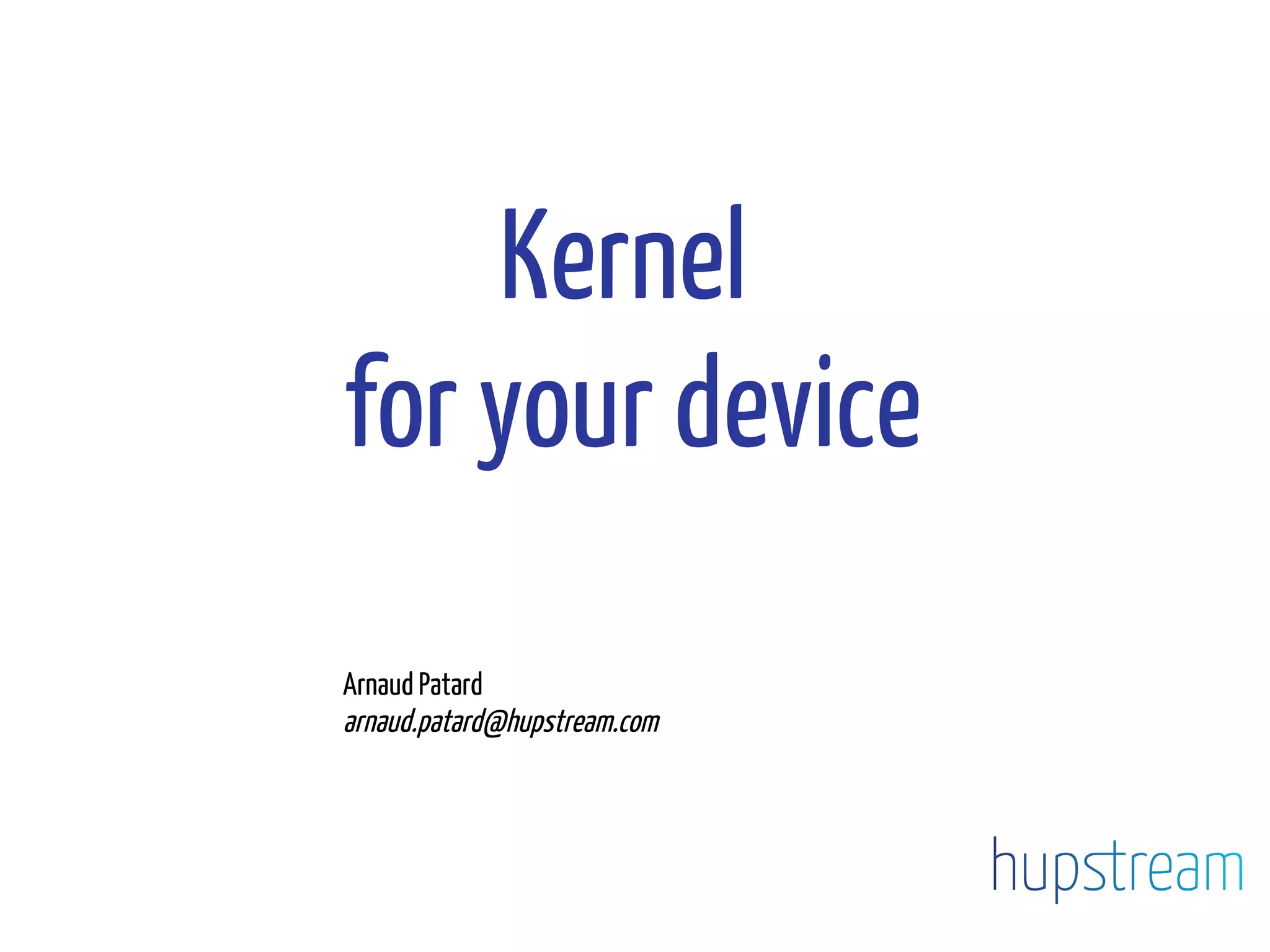 The document discusses considerations for selecting and using a kernel for specific hardware, emphasizing the importance of hardware support and integration with distributions. It highlights the pros and cons of using BSP kernels versus upstream kernels, as well as the challenges involved in maintaining and patching kernels. Best practices are suggested for ensuring successful kernel development and maintenance, including working with upstream and documenting changes.