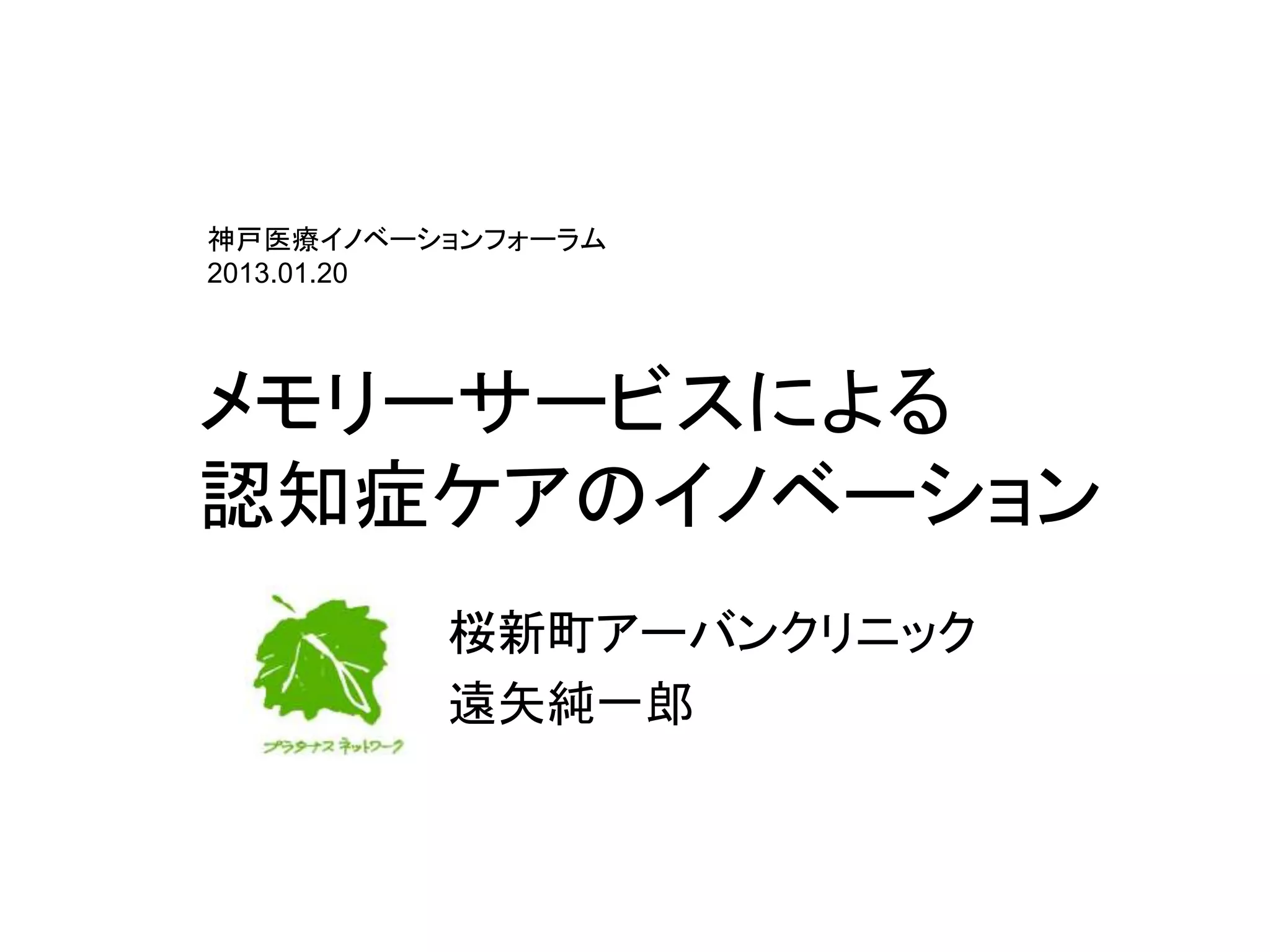 神戸医療イノベーションフォーラム 2013.01.20 メモリーサービスによる 認知症ケアのイノベーション