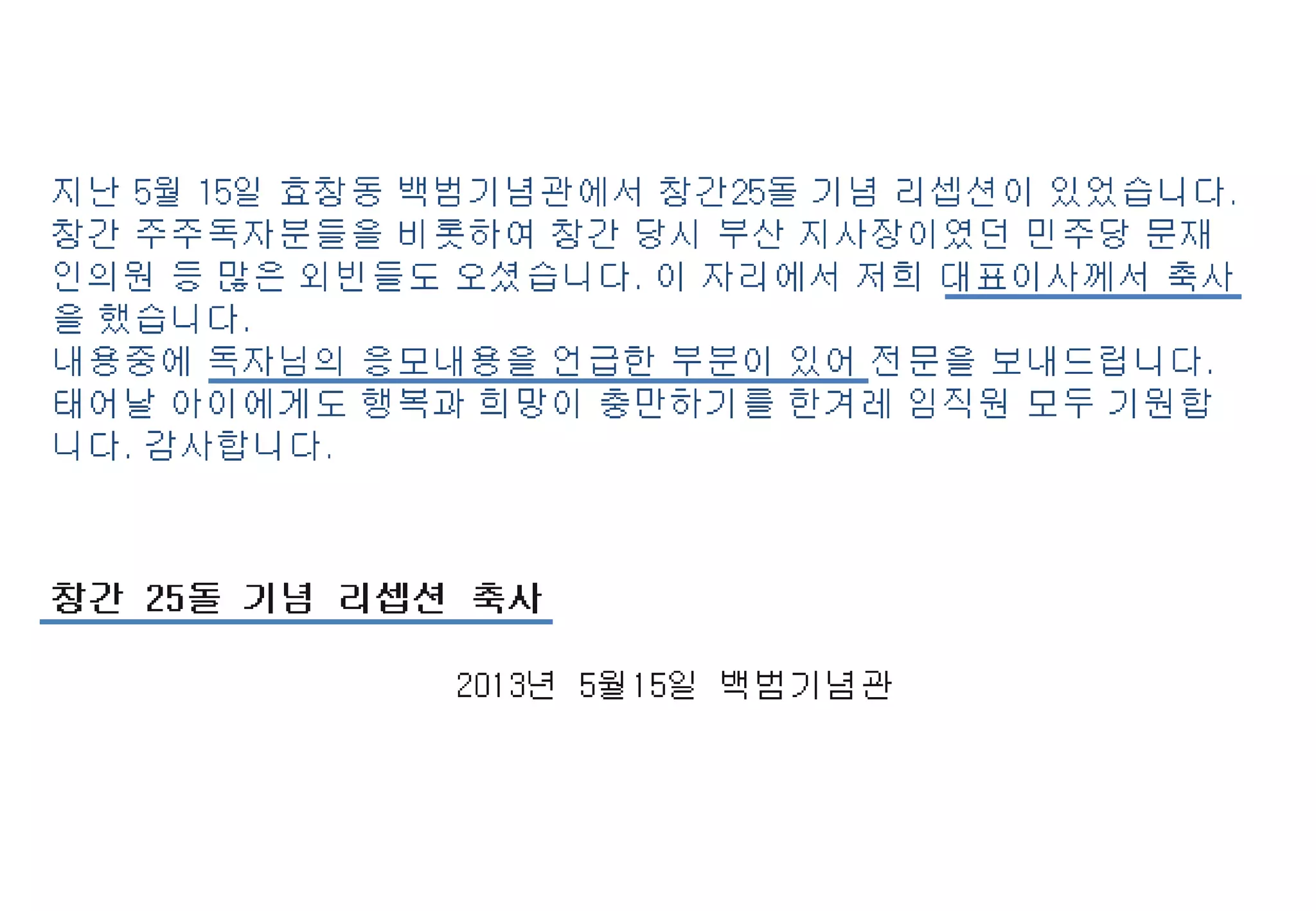 금융 세미나 위핚 장소 제공, 지역 무명 음악인 위핚