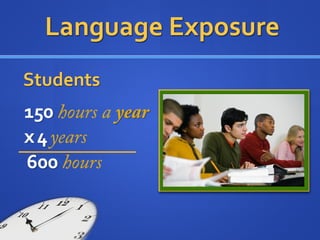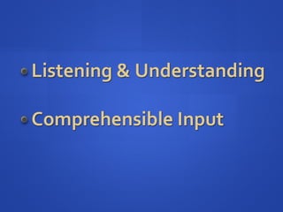 This document provides information about planning and teaching a lesson using the Teaching Proficiency through Reading and Storytelling (TPRS) method. It discusses circling to establish details about characters and locations, planning a story with a problem and solution, and using embedded readings and extended readings. Guidelines are provided for teachers to take turns adding to the story on different days, such as establishing background on Monday, introducing a problem on Tuesday, and reading portions of the extended story on Wednesday and Thursday. The document emphasizes comprehensible input techniques like repetition, specificity, and acting out stories, as well as checking for understanding with student actors.