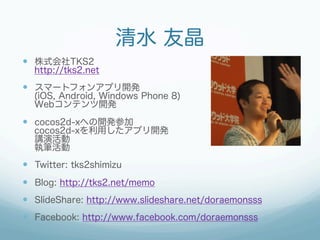 — Adobe Flashで作成さ れたswfファイルを、 cocos2d-xで読込める 形式(sam)に変換する — 複数アニメーションの 作成 https://github.com/raymondlu/super-animation-samples