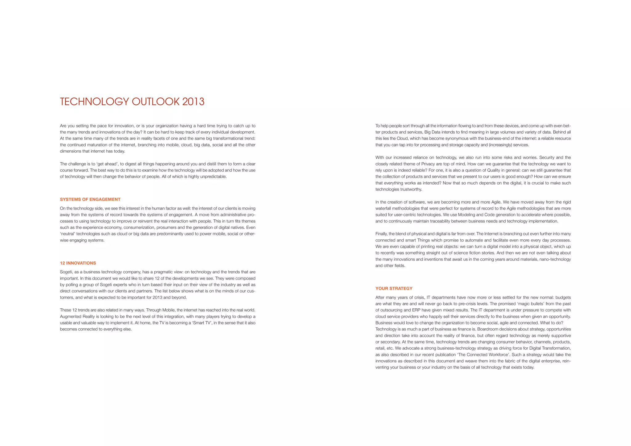 Mobile BYOD allows employees to use their own devices for work, increasing productivity and making organizations more attractive. Augmented reality overlays digital information on the real world, changing interactions. Cloud services provide computing power and applications via an economic pay-per-use model, improving agility and quality of service.