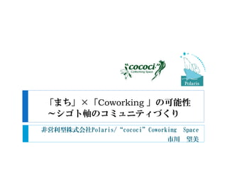 コワーキングビジネスフォーラム in NIIGATA 2013での講演資料です。 【USTREAM LIVE 録画】2013/8/31(sat) チャンネル⇒http://www.ustream.tv/recorded/38039403