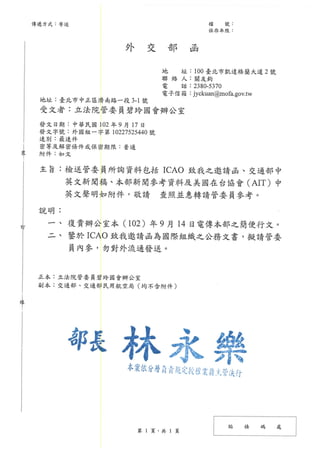 20130917外交部提供icao邀請相關文件