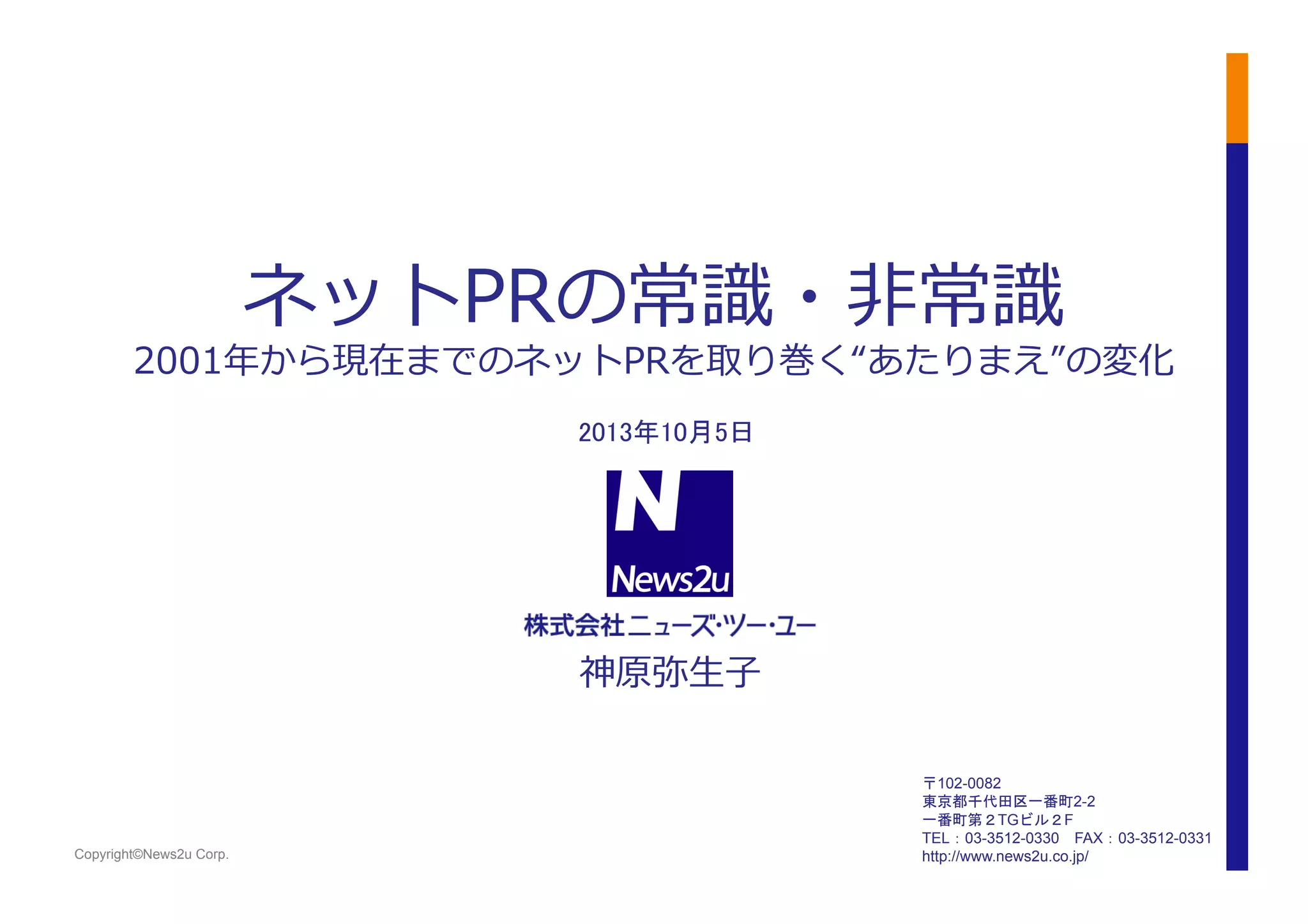 WebSig1日学校2013 http://1ds.websig247.jp/2013/ 20131005 個別授業 神原 弥生子(かんばらみなこ)先生 ネットPRの常識・非常識~2001年から現在までのネットPRを取り巻く“あたりまえ”の変化