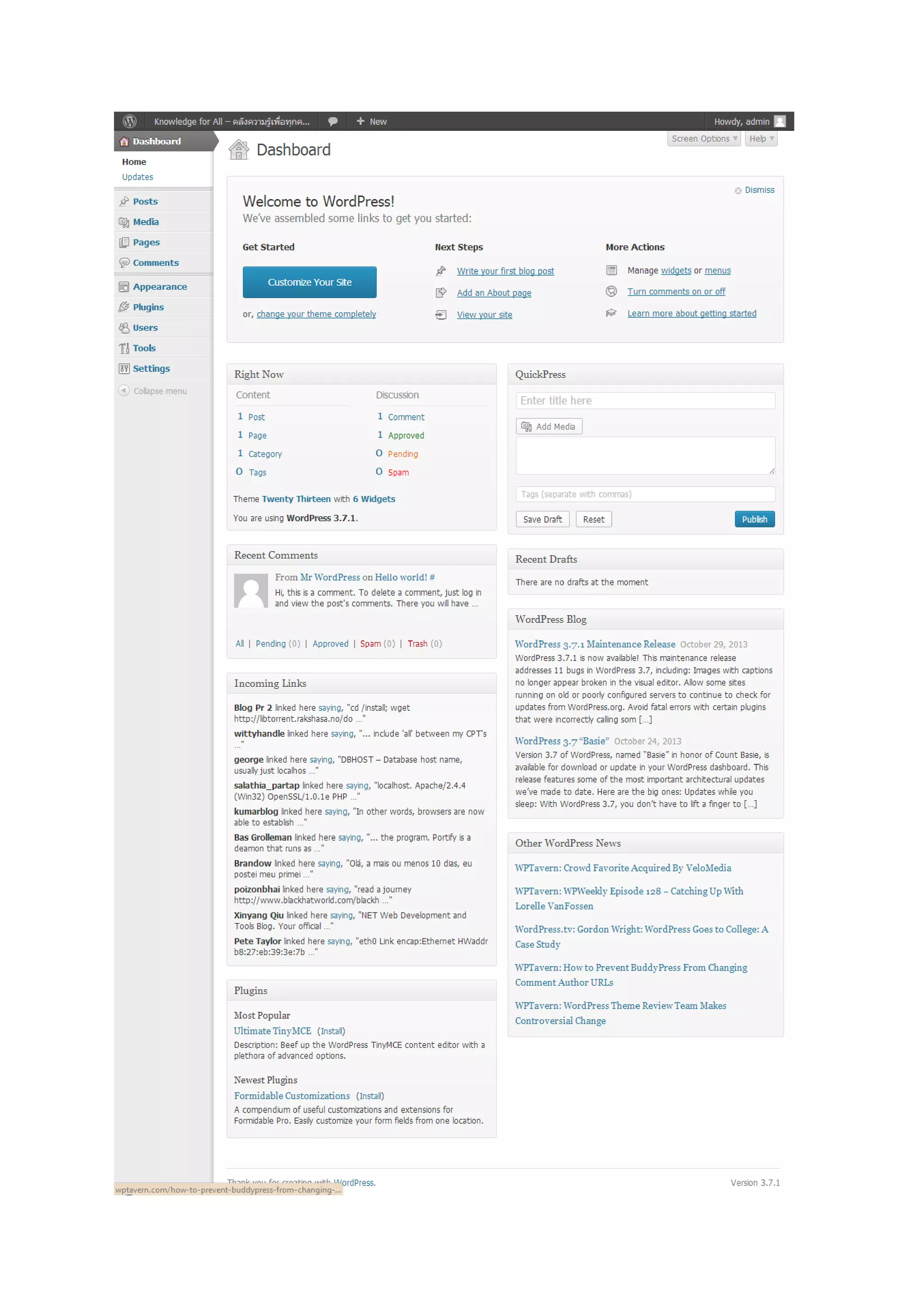 Site Title ชื่อเว็บไซต์ โปรแกรมจะแสดงชื่อตามขั้นตอนการติดตั้ง ทั้งนี้