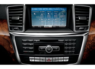 The 2013 M-Class document discusses the capabilities and innovations of the Mercedes-Benz M-Class SUV lineup. It highlights the M-Class as an SUV that continues to lead in unexpected performance, unprecedented safety, and unparalleled refinement. Some key safety and driver assistance technologies discussed include Collision Prevention Assist, which uses radar to warn of potential front impacts, PRE-SAFE that prepares for collisions, and Attention Assist that detects driver drowsiness.