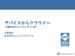 「IT エンジニア」によるデバイス開発 プラットフォーム込みの完成品/キットハードウェアの低廉化 ボード用のビルド済み Linux (, etc.) Arudino (, Netduino) Rasberry Pi Galileo, etc. Windows on Devices (win8 mini on Gallileo)