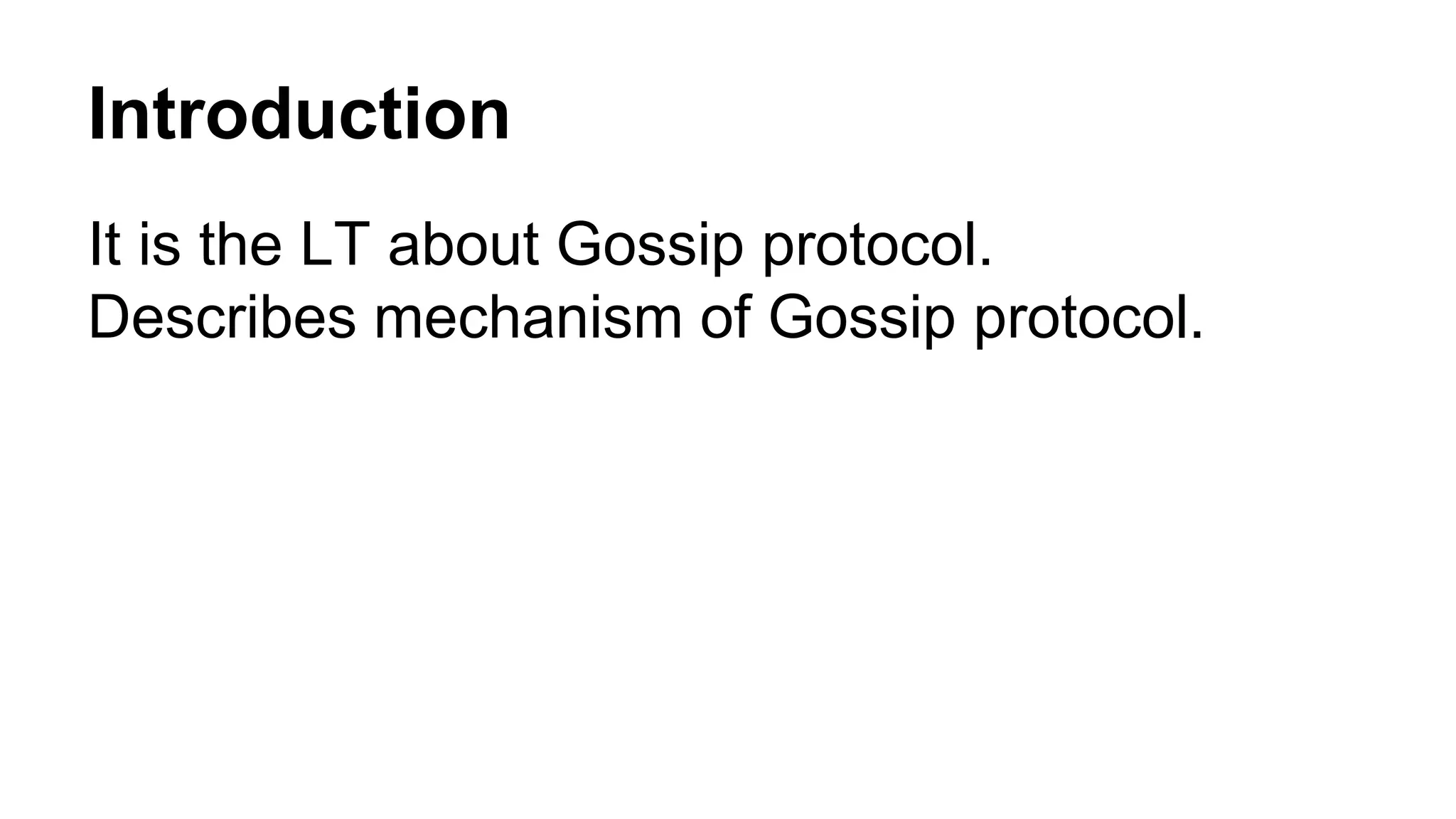 The document discusses the gossip protocol, which is a simple, masterless communication protocol inspired by gossip in social networks. It describes how gossip protocols work by having nodes randomly share information with other nodes to propagate data throughout the entire network. They are useful for building reliable distributed systems that can tolerate failures of individual nodes.