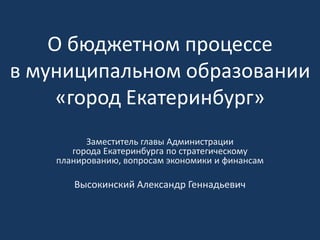 Документ описывает бюджетный процесс в Екатеринбурге, включая различия между городским и областным бюджетами. Подробно охватываются доходы и расходы, а также программа 'столица' и финансирование социальной инфраструктуры. Рассматриваются также проблемы в здравоохранении, образовании и недополученные доходы транспортных предприятий.