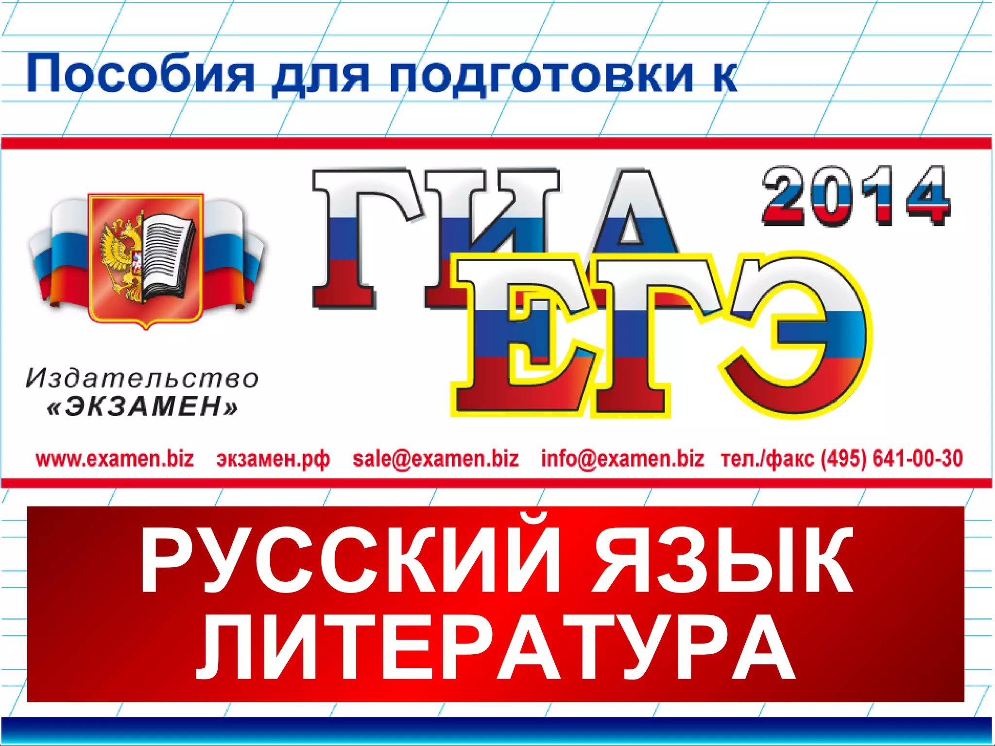 Документ представляет пособия для подготовки к экзаменам по русскому языку и литературе, разработанные издательством 'Экзамен'. Пособия охватывают все аспекты экзаменационной работы ЕГЭ и ГИА, предоставляя теоретические и практические материалы, типовые задания и рекомендации для преподавателей и студентов. Основная цель пособий – помочь учащимся успешно подготовиться и пройти экзамены.