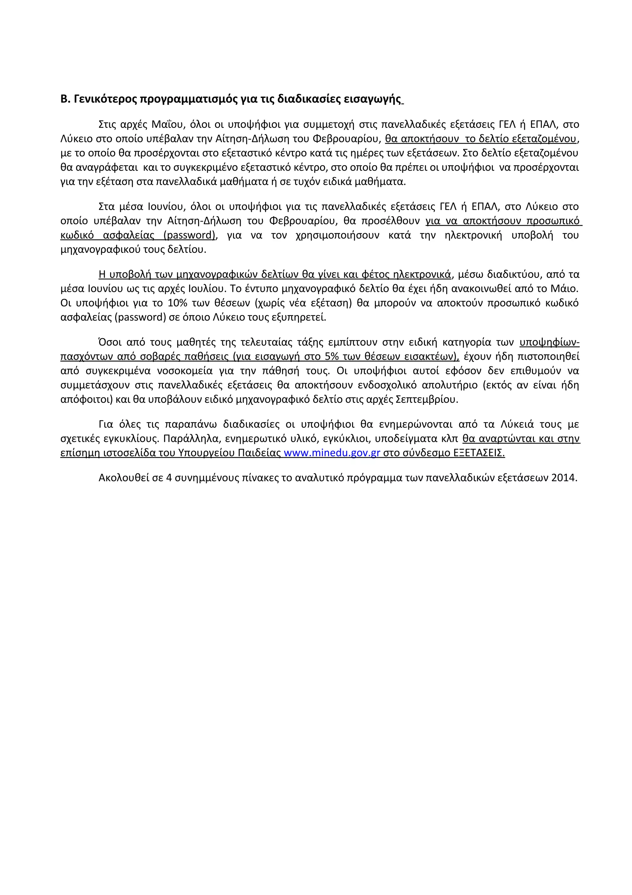 ΠΡΟΓΡΑΜΜΑΤΑ ΤΩΝ ΠΑΝΕΛΛΑΔΙΚΩΝ ΕΞΕΤΑΣΕΩΝ 2014ΠΡΟΓΡΑΜΜΑΤΑ ΤΩΝ ΠΑΝΕΛΛΑΔΙΚΩΝ ΕΞΕΤΑΣΕΩΝ 2014