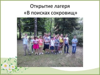 Документ описывает программу языкового лагеря 'Happy Camp', который проходил в 2014 году, с акцентом на различные проекты и мероприятия, проводимые на протяжении смены. Каждый день лагерь предлагал новые темы, такие как 'в поисках сокровищ', 'японские журавлики', 'день Нью-Йорка' и другие, с участием преподавателя из США. Участники лагеря engaged in creative activities, включая изготовление сувениров, конкурсы и театральные постановки.