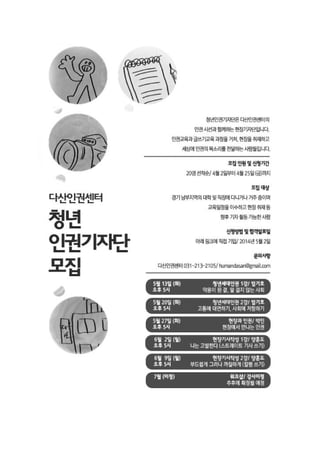 다산인권센터 청년인권기자단 모집이 시작되었다. 청년인권기자단은 인권현장을