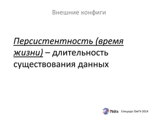 Документ описывает внешние конфигурации, виды персистентности данных и время связывания переменных в Java, акцентируя внимание на важности гибкости и минимизации перекомпиляции. Также рассматриваются методы сборки проектов и использование автотестов для повышения качества кода, включая принципы модульного тестирования и TDD. Упоминаются инструменты, такие как Apache Ant, Maven и библиотеки для тестирования.