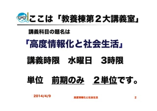 大分大学教養科目「高度情報化と社会生活」2014年4月9日講義資料「講義のガイダンス」
