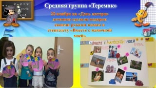 Документ описывает мероприятия, проведенные в 2-й младшей группе «колобок», включая создание мини-музея, выставку детских работ и театрализованную постановку. Основные цели мероприятий заключаются в обогащении знаний о домашних животных, развитии творческой активности и выразительного чтения у детей. Также запланированы конкурсы и занятия, направленные на закрепление знаний о правилах дорожного движения и любви к родным.