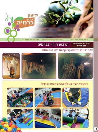 ערבה :ועריכה עיצוב כרמיה קיבוץ 1 המשוטטת המצלמה מוריס שלבכרמיה חורף תרבות !שמח היה ,וחברים קריוקי עם ""בטברנה ערב ...ובגדול חזר הספורט באולם חורף ג'ימבורי