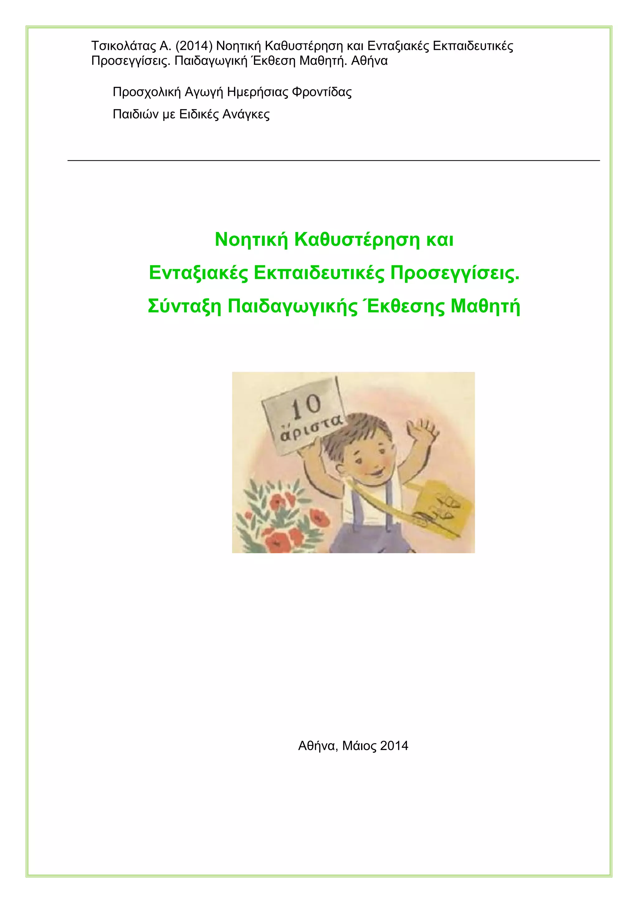 Τσικολάτας Α. (2014)Νοητική Καθυστέρηση και Ενταξιακές Εκπαιδευτικές