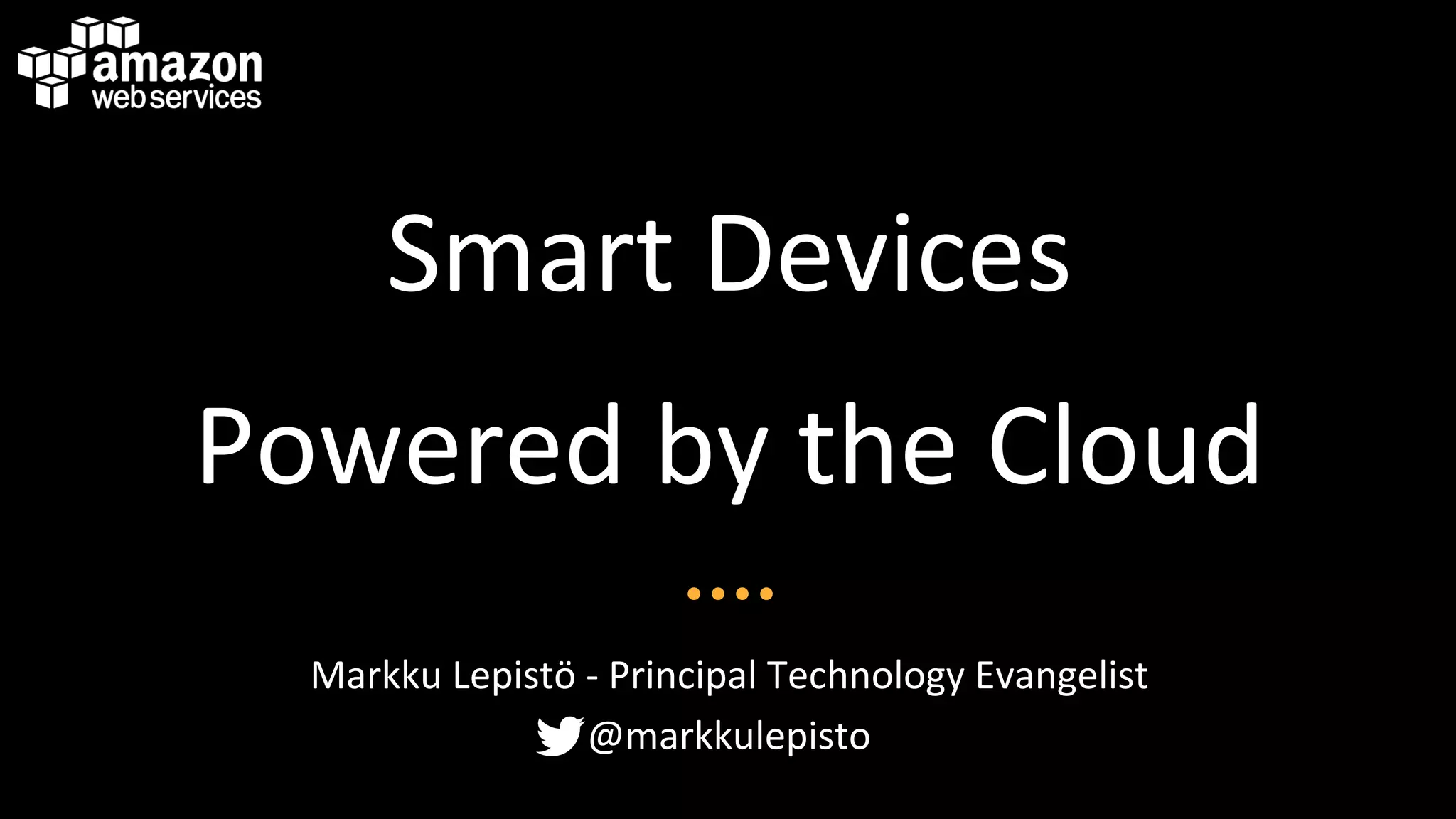 This document discusses how smart devices can be powered by cloud computing. It begins by comparing the capabilities of devices like Arduino Uno and Raspberry Pi. It then outlines the various sensors and components that can be connected to smart devices. The challenges of supporting thousands to millions of distributed devices and users are also presented. The document explains how the cloud provides unlimited storage, memory, and computing to support smart devices at large scale. It provides examples of real-world sensor data and simulations being collected and analyzed in the cloud. Finally, it demonstrates connecting an Arduino and Raspberry Pi to AWS cloud services for real-time data streaming, storage, and analytics.