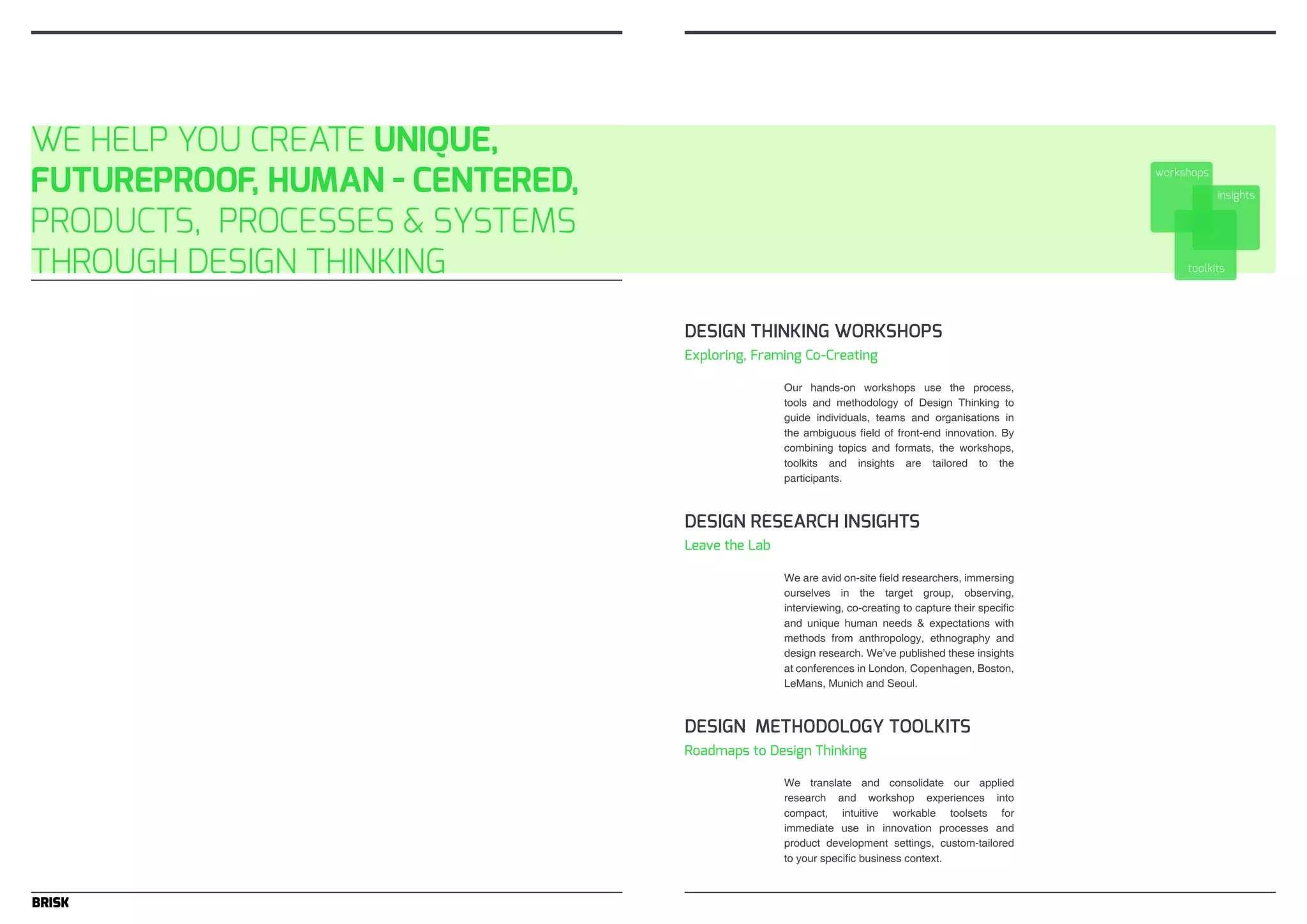 The document discusses design thinking workshops that facilitate human-centered innovation through hands-on methodologies tailored to participants. It highlights research insights from immersive field studies, resulting in products and toolkits aimed at enhancing user interactions in various public interface settings. Additionally, it describes the impacts of social and spatial factors on the usability of public interfaces, supported by empirical studies and conference presentations.