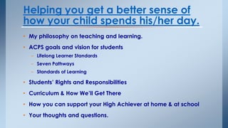 4) Methods for parents to communicate with the teacher such as email, notes in the daily planner, and parent information nights.
