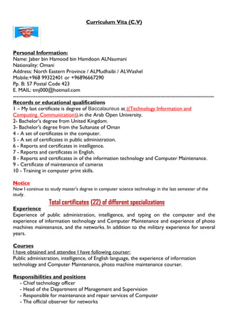 جابر بن حمود بن حمدون النعماني، عماني الجنسية، يمتلك عدة درجات بكاليوس في تقنية المعلومات والحوسبة والتخصصات الأخرى، وله خبرات واسعة في مجالات الإدارة العامة والاستخبارات وصيانة الحواسيب والشبكات. حاليا، يدرس الماجستير في علوم الحاسوب ويملك 22 شهادة في تخصصات متنوعة. يشغل مناصب قيادية مثل رئيس قسم التقنية ورئيس قسم الإدارة والإشراف.