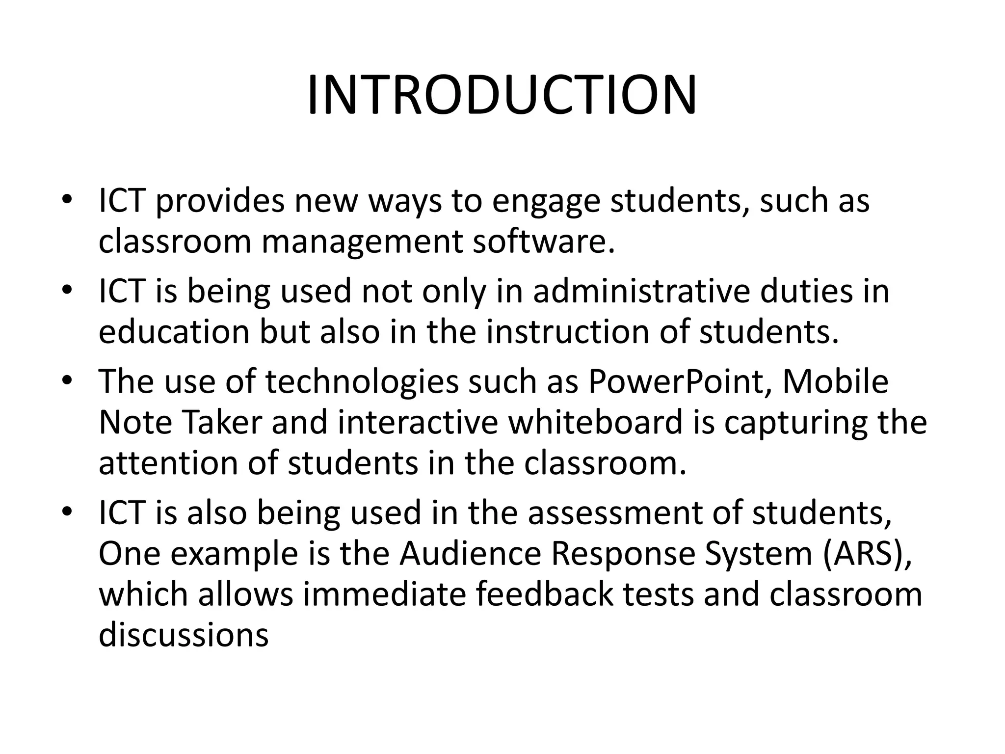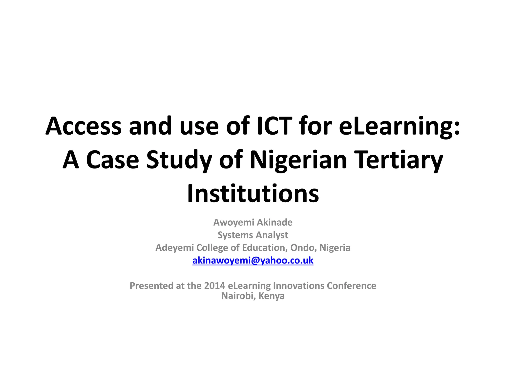 The document discusses a case study of ICT implementation in tertiary institutions in Nigeria. It finds that while the government has policies supporting ICT adoption and has invested in infrastructure development, many institutions still lack effective integration of ICT in teaching and learning. Barriers include inadequate infrastructure, lack of teacher training, and reliance on traditional teaching methods. Recommendations include expanding access to training, developing strategic ICT adoption plans, and encouraging innovative pedagogies that integrate technology.