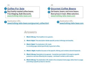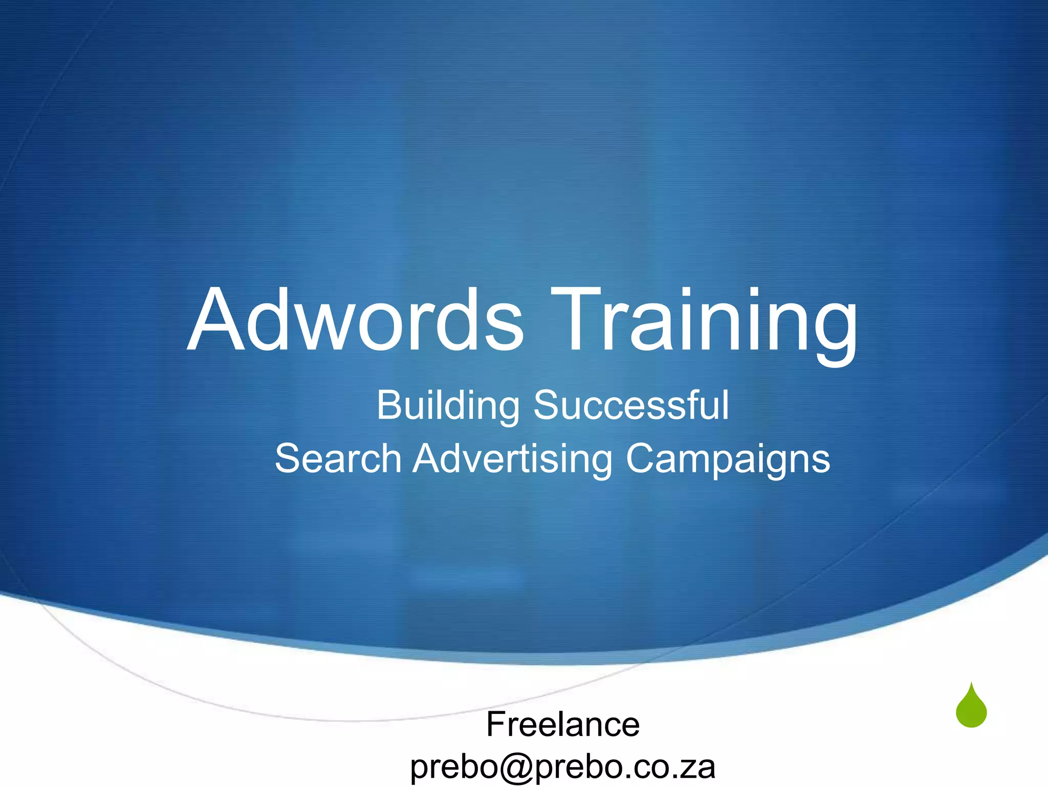 The document provides a comprehensive guide to Google AdWords, detailing its functionality as an advertising system that allows businesses to bid on keywords for targeted ads. Key concepts include effective keyword selection, account organization, and crafting compelling ads to maximize click-through rates. The document emphasizes the importance of a structured approach in planning campaigns around specific business goals and understanding key metrics such as quality score and ad rank.