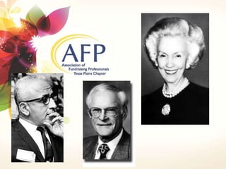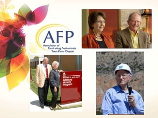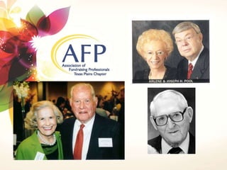 This document announces the 2014 National Philanthropy Day awards in Amarillo, Texas. It recognizes outstanding individual, corporate, and volunteer philanthropists in the Texas Panhandle region. The document lists the 2014 award recipients in categories such as Outstanding Philanthropist, Outstanding Corporation, Outstanding Foundation, and Outstanding Community Service Organization. It also includes quotes from previous award recipients and lists award recipients from previous years of National Philanthropy Day from 1994 to 2014.