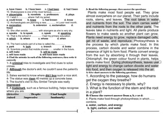 1. The document provides a reading comprehension exam for English as a foreign language. It includes questions about responding to situations, identifying language functions in dialogues, choosing the correct answers, finding mistakes in sentences, summarizing passages, and translating between Arabic and English.