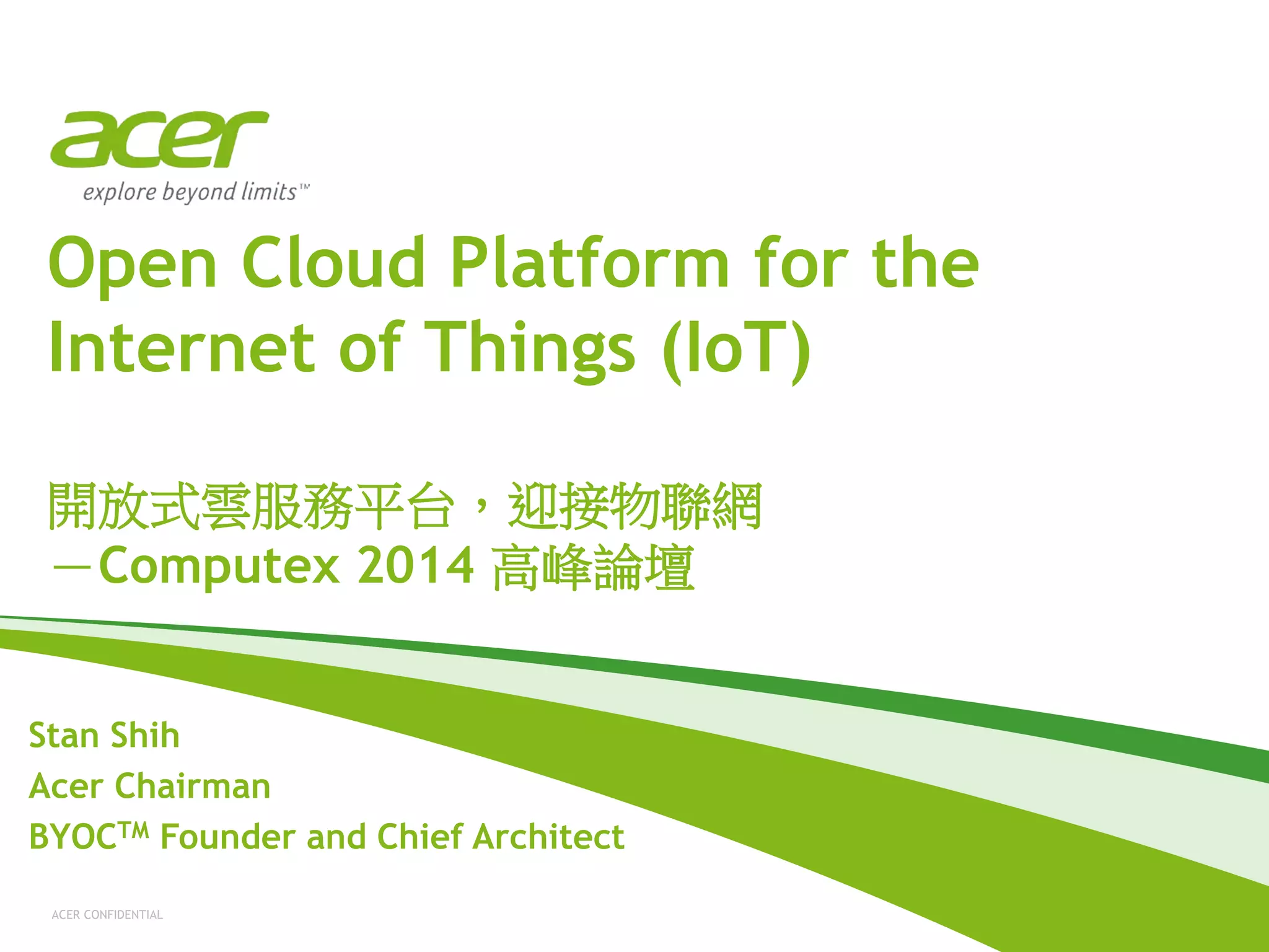 Acer is shifting from a hardware-centric model to a comprehensive 'hardware + software + services' approach, focusing on the Internet of Things (IoT) with a new open cloud platform. The platform allows users to build personalized cloud solutions that are secure, private, and scalable across various devices and networks. Acer aims to co-create value with its customers and stakeholders, emphasizing a balanced ecosystem that prioritizes customer interests and fosters local alliances.
