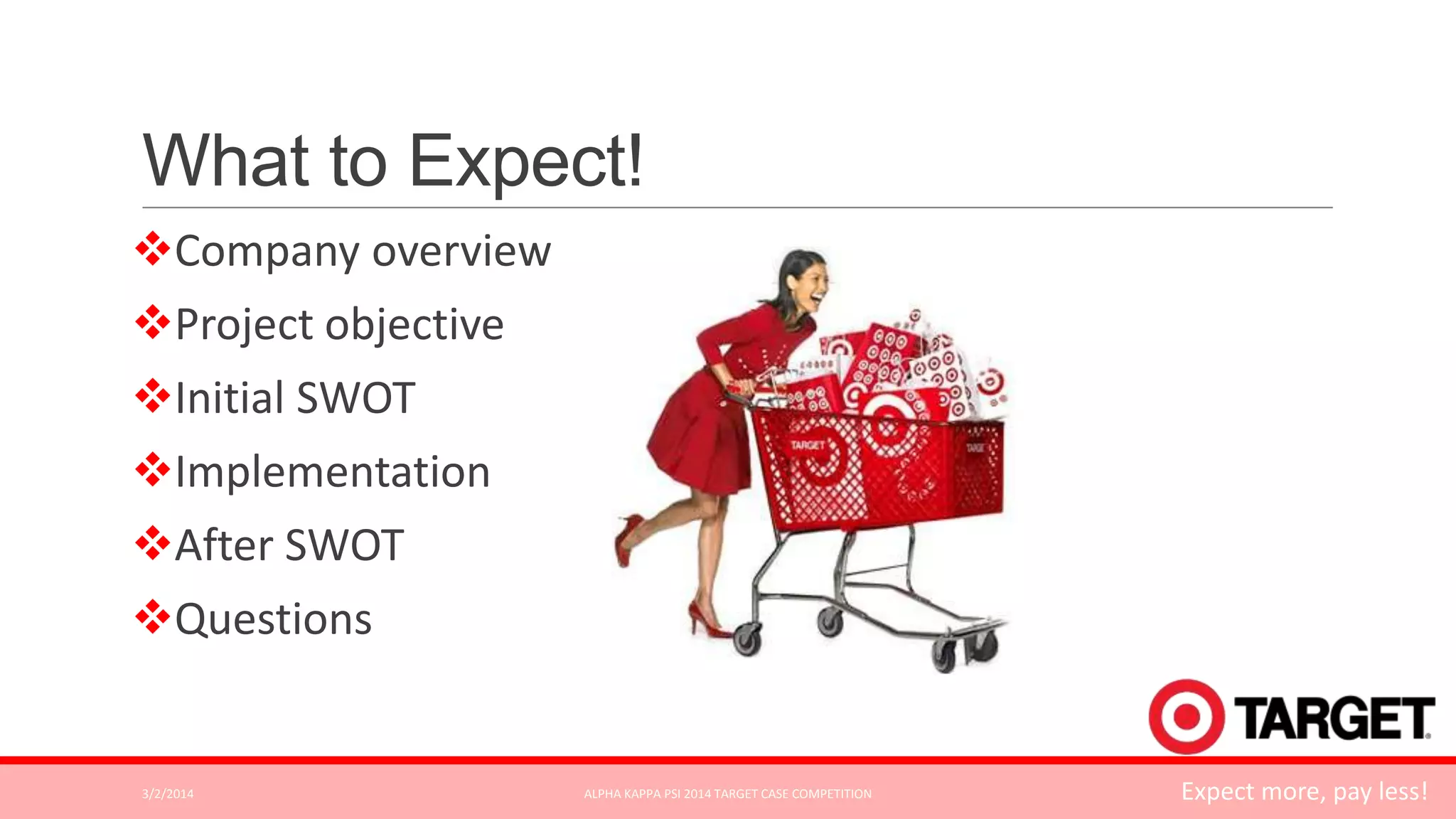 The document outlines a project presented at a competition focused on food localization strategies for Target, aiming to enhance local relevance while adhering to corporate goals. It includes a SWOT analysis, survey implementation for customer preferences, and a regional product approach to merchandising. The proposed timeline spans eight months for research, development, and adjustments.