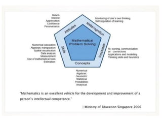 This document discusses using a problem-solving approach to teach mathematics. It focuses on practicing problem-solving lessons and breaking students into groups to work on problems. The document provides resources for lesson plans and contact information for the speaker who advocates for integrating problem-solving into mathematics education.