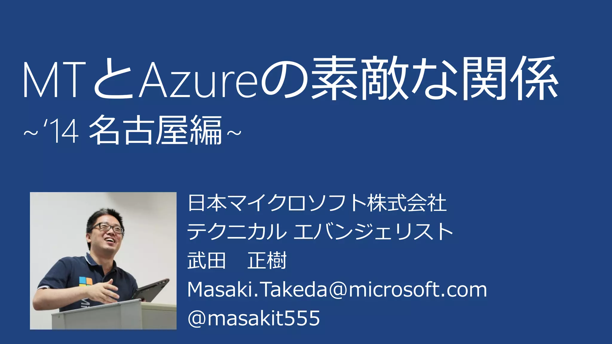 MTとAzureの素敵な関係 ~‘14 名古屋編~ 日本マイクロソフト株式会社 テクニカル エバンジェリスト 武田