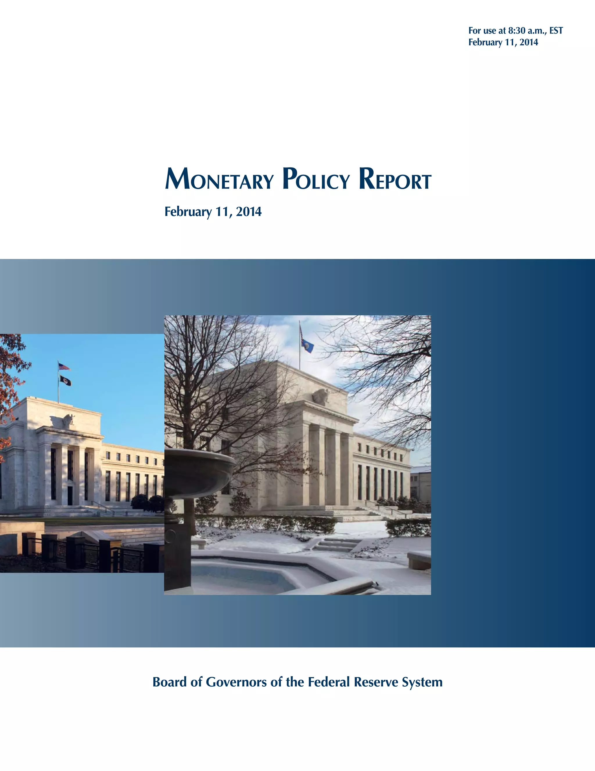 The document is the February 2014 Monetary Policy Report from the Federal Reserve. It discusses recent economic and financial developments. Key points: