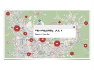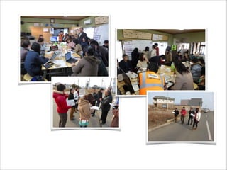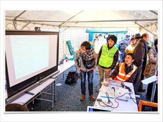 Project ・南三陸マッピングパーティ ・伊豆大島土砂災害クライシスマッピング ・閖上マッピングパーティ ・塩竈マッピングパーティ(初めての地元) ・世界銀行 防災減災ハッカソン Race for Resilience ・豪雪災害クライシスマッピング by @mapconcierge, @Tom_G3X and OSM conctibutors 121