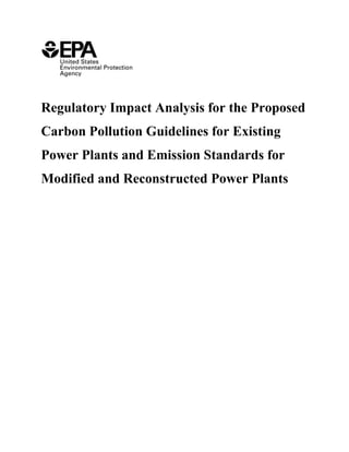 This document provides a regulatory impact analysis for proposed emission guidelines for greenhouse gases from existing power plants and emission standards for modified and reconstructed power plants. It finds that the proposed guidelines would reduce carbon dioxide emissions from the power sector while also providing substantial health benefits from reduced emissions of particulate matter and ozone. Specifically: