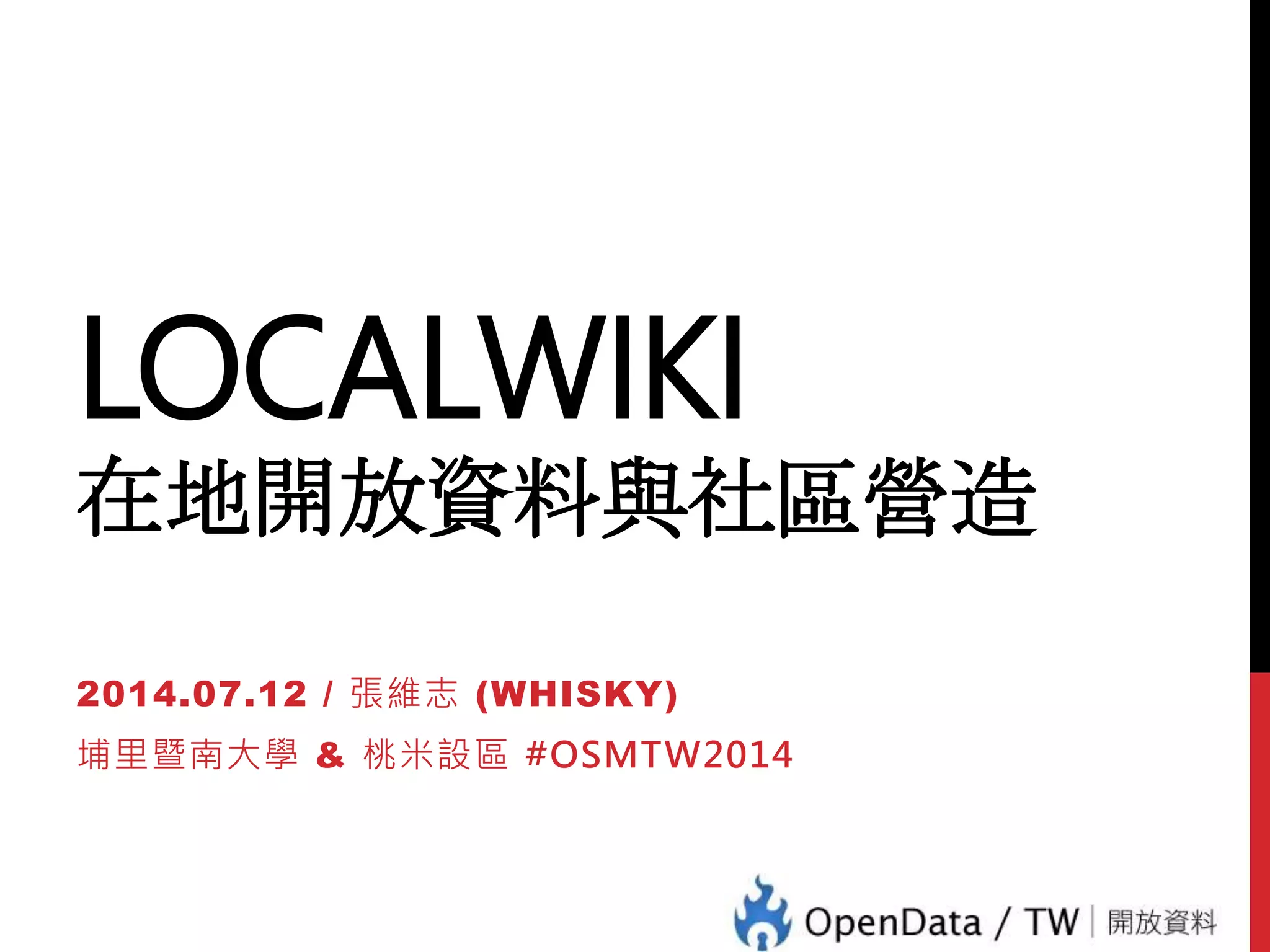 本文件探讨了 localwiki 在开放数据与社区构建中的应用,强调了通过众包和开放数据的力量进行社区信息的记录与分享。文中提到的 localfun 计划通过游戏促进地方认知,鼓励志愿者参与数据收集和整理。最后,文件号召建立团队、明确目标并启动项目,以推动信息共享与社区协作。