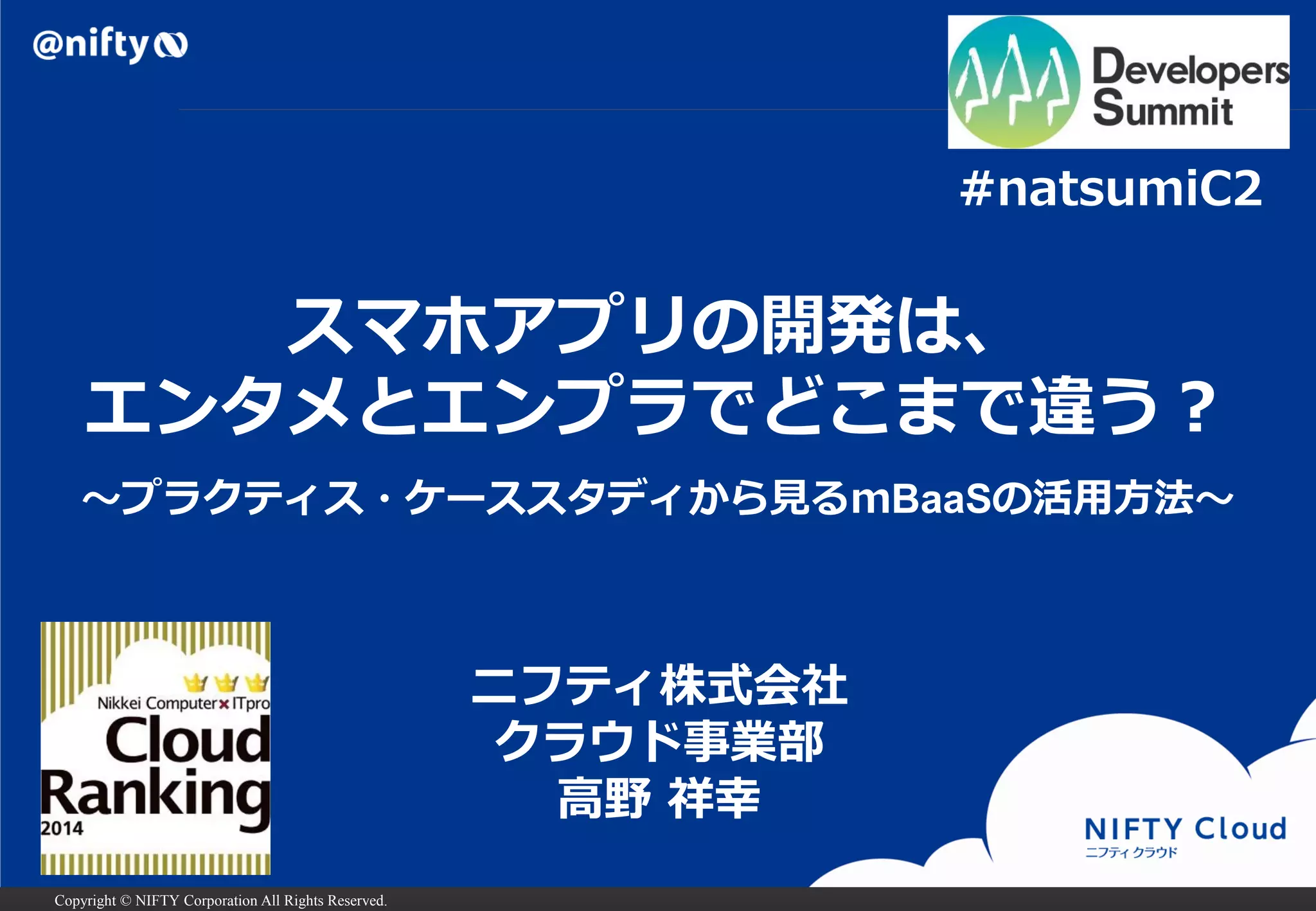 【C-2】スマホアプリの開発は、エンタメとエンプラでどこまで違う? ~プラクティス・ケーススタディから見るmBaaSの活用方法~ http://event.shoeisha.jp/devsumi/20140731/session/481/