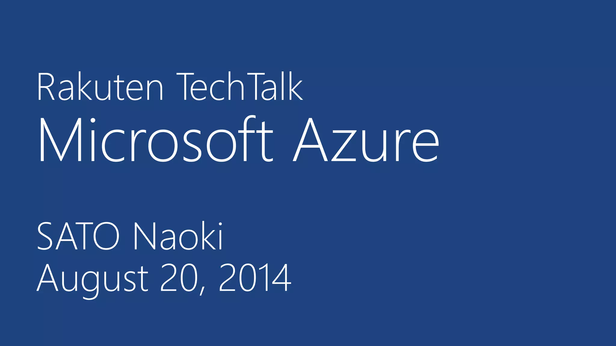 This document provides an overview of Microsoft Azure presented by SATO Naoki at a Rakuten TechTalk on August 20, 2014. It introduces Azure and its benefits including rapid setup of environments, ability to scale infrastructure, and increased efficiency at reduced costs. It outlines Azure's global footprint and lists some Fortune 500 companies and key metrics on usage. The document discusses how Azure differentiates through enterprise-grade capabilities and hybrid consistency across on-premises and cloud. It provides examples of Azure services and demos the Azure portal.