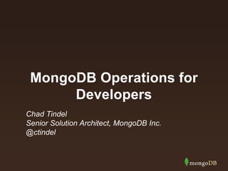 The document discusses MongoDB operations for developers, including its data model, use of replication for high availability, and sharding for scalability. It also covers deployment architectures, security features, and operational resources for MongoDB.