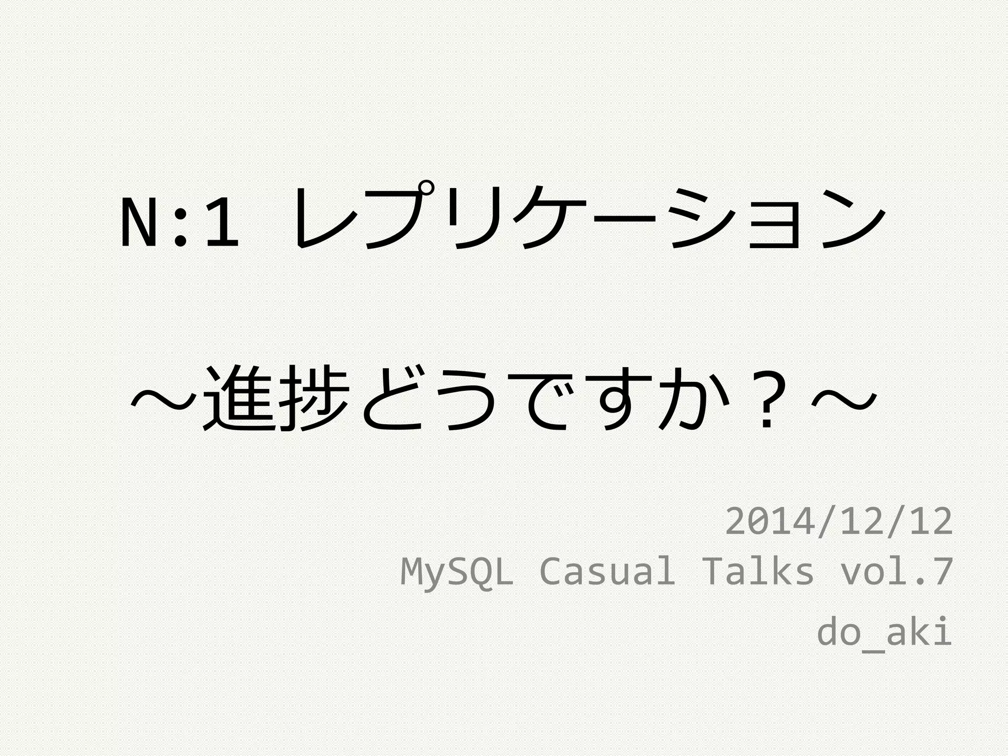 N:1 レプリケーション ~進捗どうですか?~ 2014/12/12 MySQL Casual