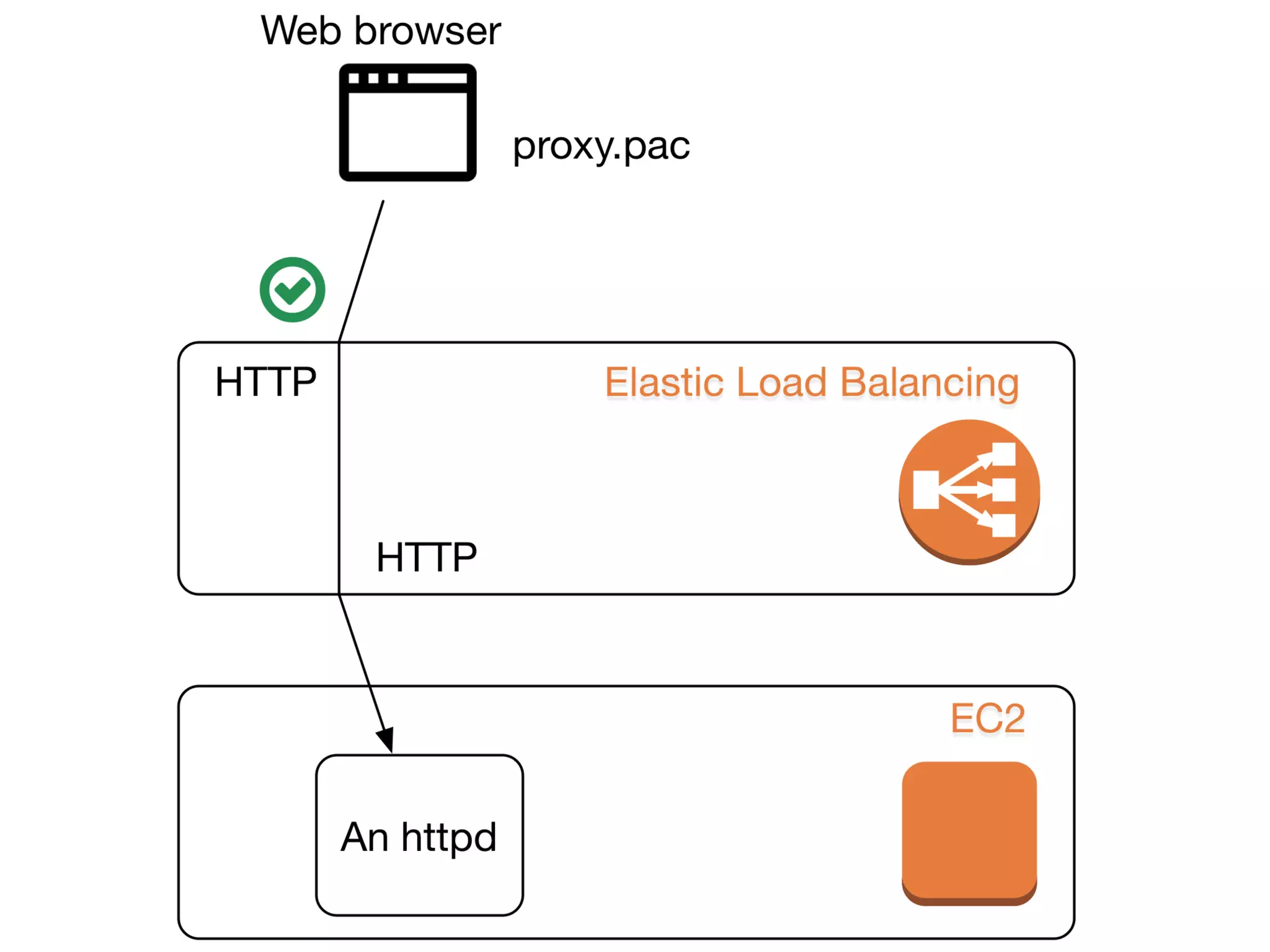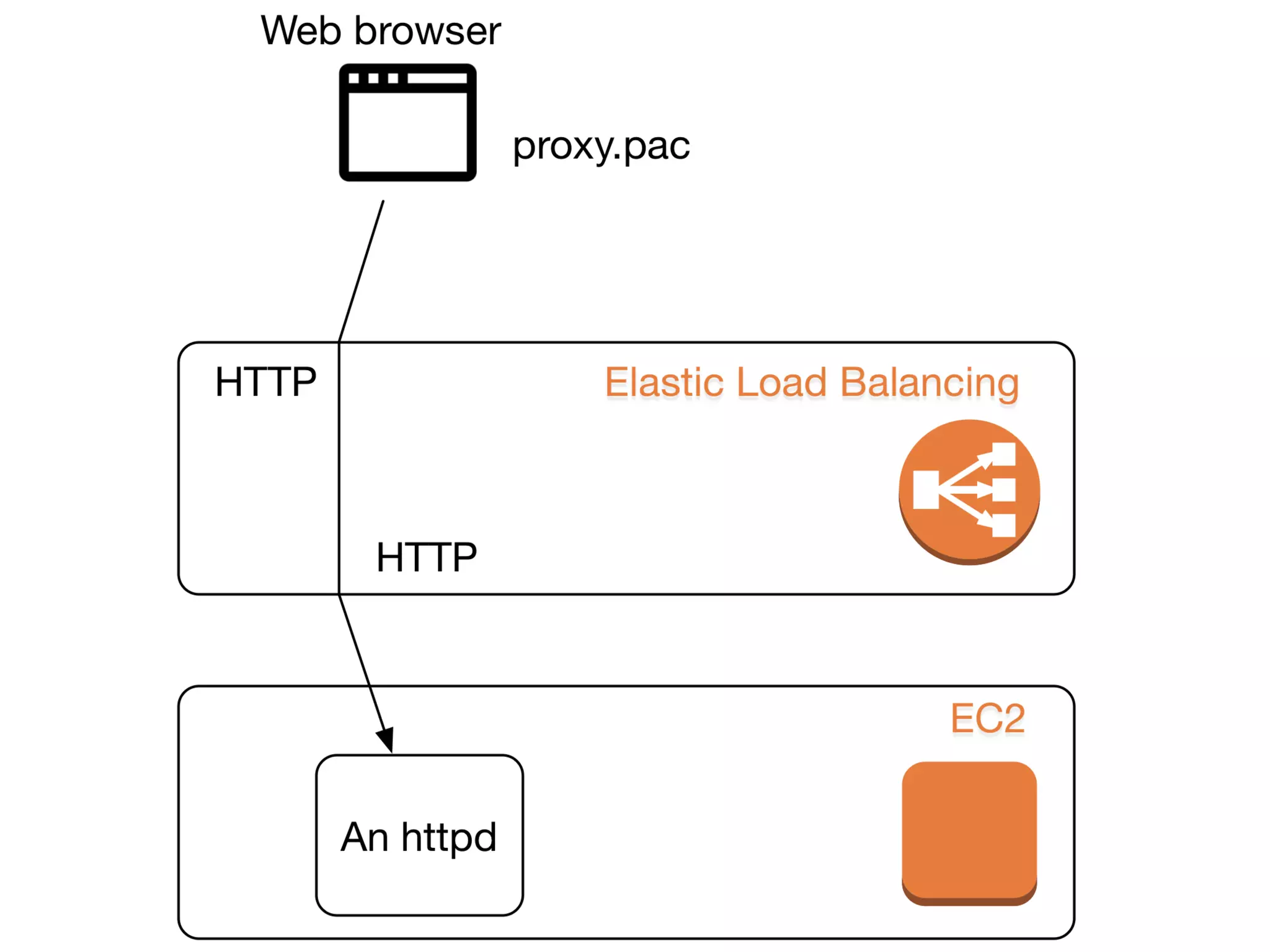 “example.com") { if (shExpMatch(url, "https*")) { return “PROXY 123345.ap-northeast-1.elb.amazonaws.com:8080”; } else { return “PROXY 123345.ap-northeast-1.elb.amazonaws.com”; } }