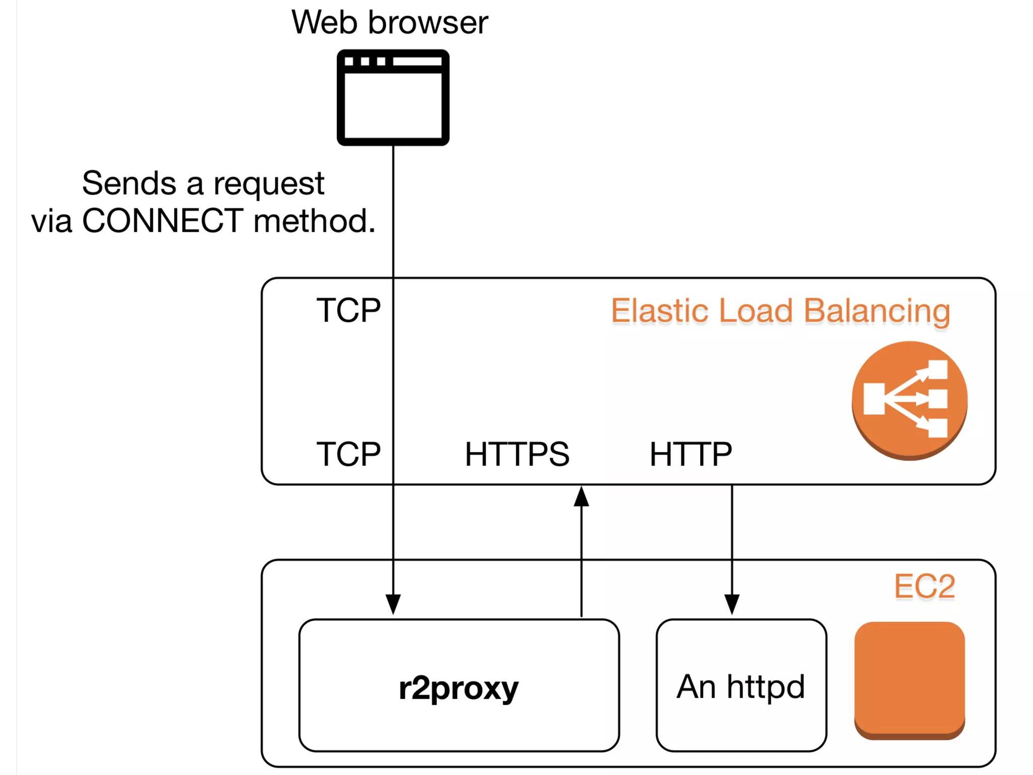 プロキシサーバーを経由して HTTPSで接続する場合には ブラウザはCONNECTメソッドを使う