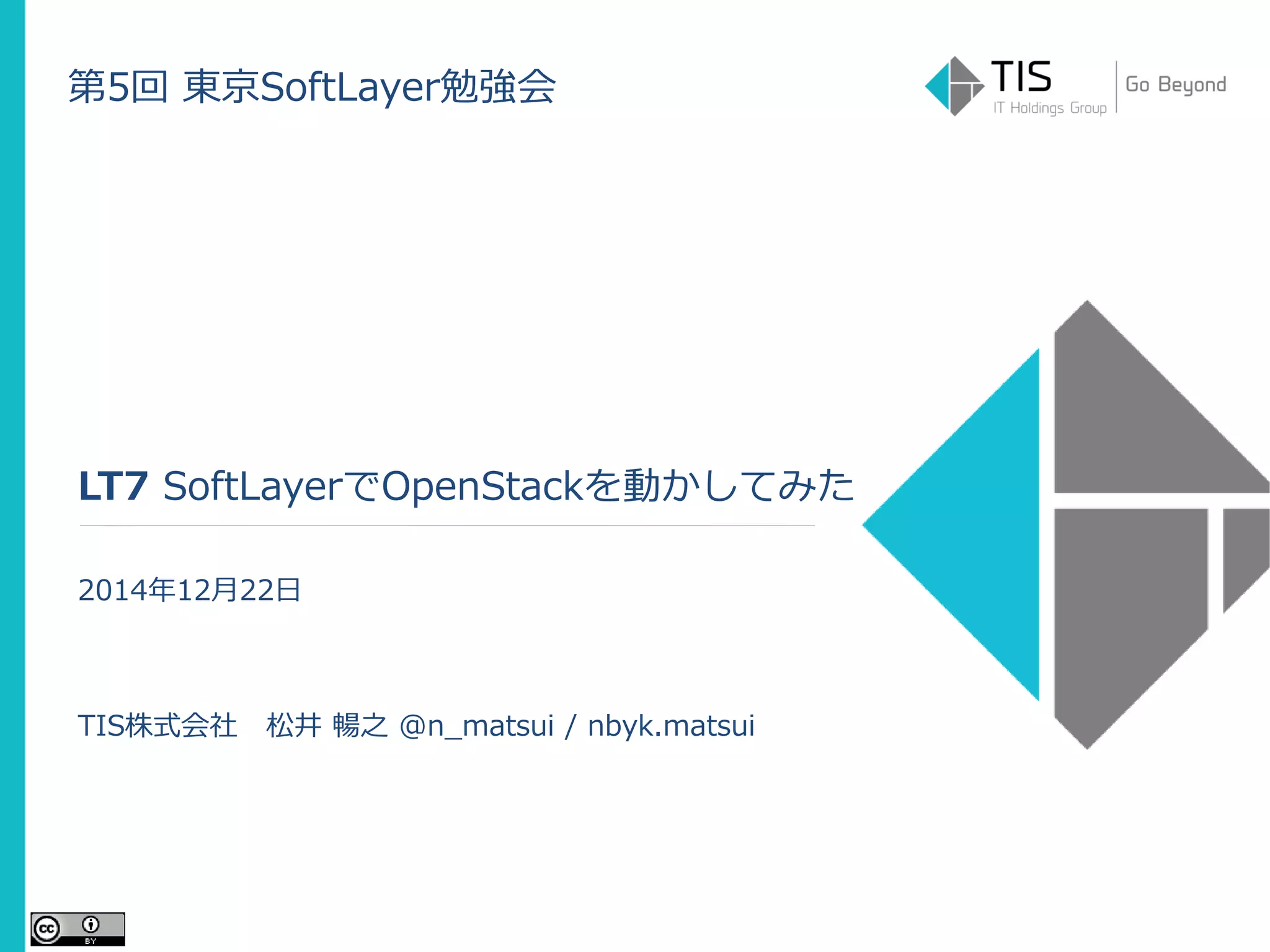 第5回 東京SoftLayer勉強会 LT7 SoftLayerでOpenStackを動かしてみた 2014年12月22日 TIS株式会社